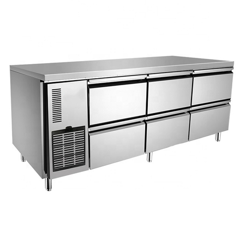 Refrigerador de acero inoxidable, mesa de preparación de alimentos debajo del mostrador, banco de trabajo