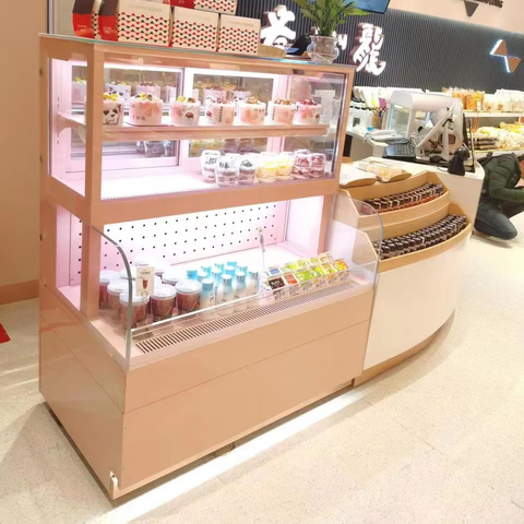 Escaparate pequeño de refrigerador de doble temperatura para exhibición de pasteles de supermercado Gabinete de refrigeración por aire portátil
